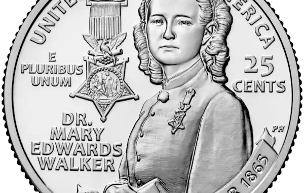 Above: The reverse of the latest coin in the American Women Quarters Program shows Dr Mary Edwards Walker, the only women to be awarded the US Medal of Honor.