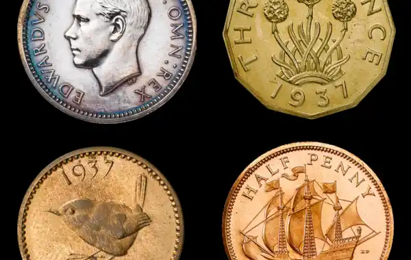 Above: Four of a series of Edward VIII coin pattern designs made before the King abdicated, 1937 (The Royal Mint Museum)