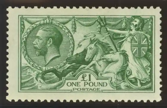 Mention King George V stamps to most collectors and they may start talking about seahorses, that's thanks to the iconic design that adorned higher value KGV stamps for much of his reign. So naturally any KGV collector will seek out the best examples of the stamp they can find. This unmounted example of a 1913 dull blue-green £1 is a great start, with the stamp slap-bang in the centre and the design looking fresh. It was offered at http://british-stamps.co.uk website for £2,945.