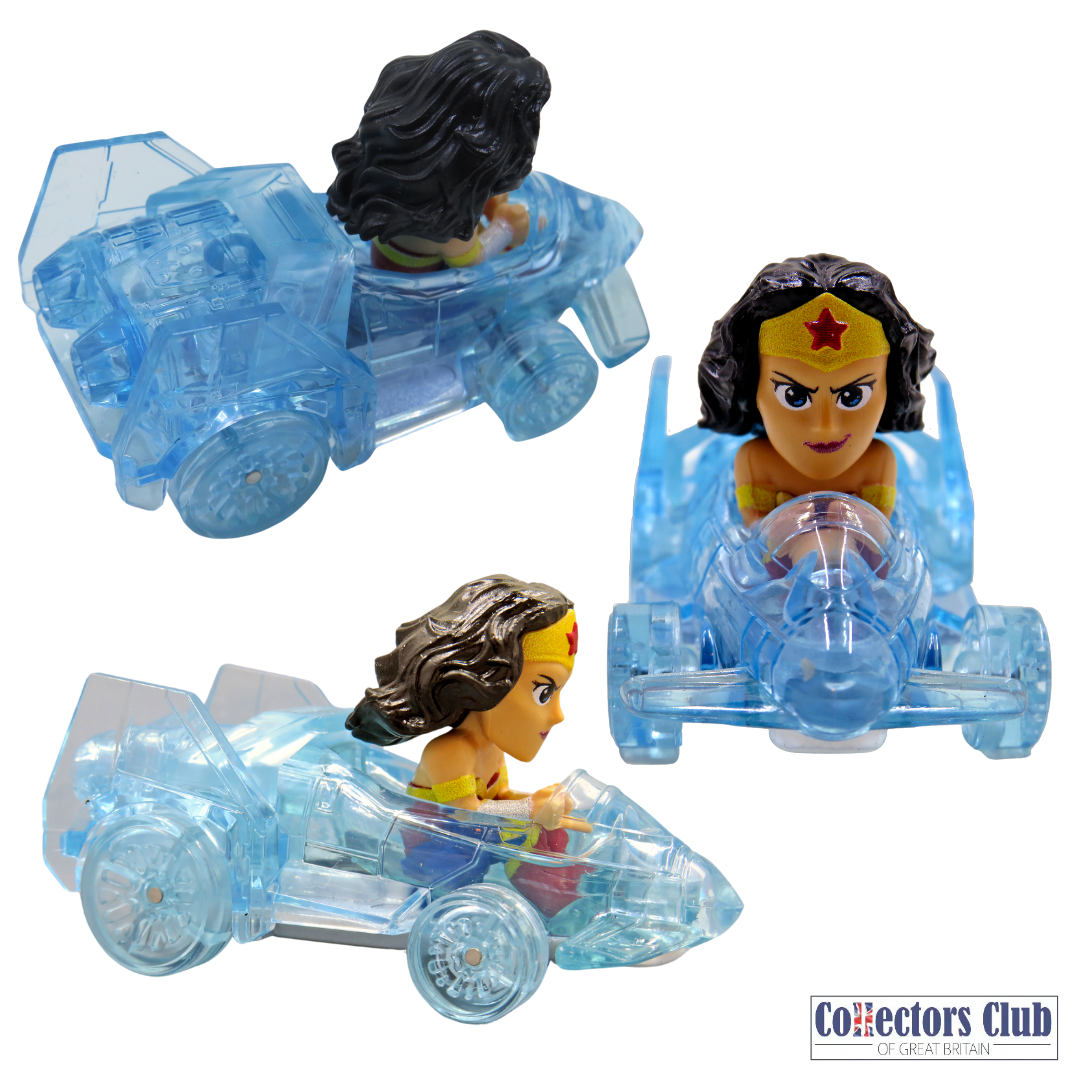 Sitting in the cockpit is a plastic model of Wonder Woman. Most character car model with over-sized drivers only provide a head and upper body, with no lower body at all. However, Toy collectors will be delighted to know that this model has a full figure, probably because the fuselage is clear, and the lower body is therefore visible.