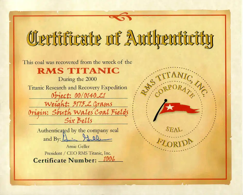 Just a handful of artefacts from the Titanic have made it back to the water surface as the ship lies at a depth of 3800 m (12470 ft.) at the bottom of the sea. One of them is an authentic coal lump which was recovered back in 2000.