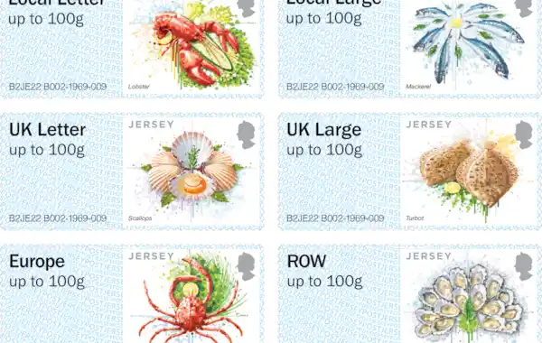 Jersey’s seafood features on a new set of Post & Go stamps, entitled ‘Harvest of the Sea’, nicely complementing the new set from Guernsey to create a philatelic feast.