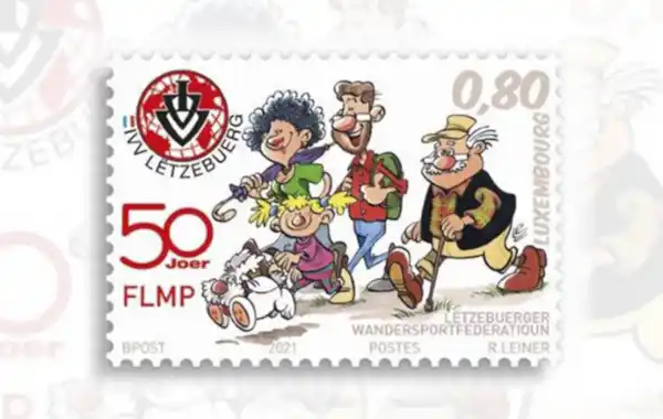 The Fédération Luxembourgeoise de Marche Populaire organises walks across the country each weekend, and a family of walkers can be seen on the new stamp from Post Luxembourg.