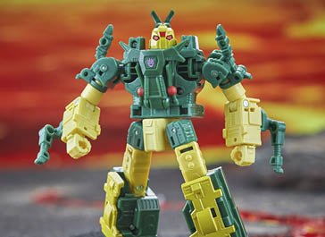 The Mayhem Attack Squad in the Doom ‘n Destruction collection includes two Insecticons, a 4.5 inch Chop Shop, which converts between robot and stag beetle mode and Barrage, which changes between robot and rhinoceros beetle mode. Based on the Generation 1 “Deluxe Insections,”, both the Chop Shop figure and the Barrage figure also feature articulated head, arms, and legs so you can display them in multiple action poses.