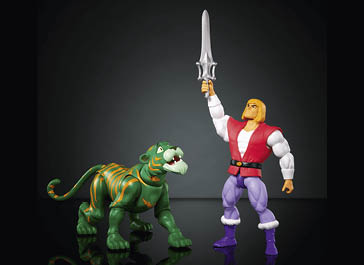 Designed at 5.5-inch scale, like the classics, but with the posing possibilities of more modern action figures, each of the two figures has at least 16 articulated joints and a content-accurate appearance with an alternate head. The alternate head for Cringer has a frightened expression with an articulated jaw. A Power Sword accessory for Prince Adam and a swappable hand to hold it completes the pack.