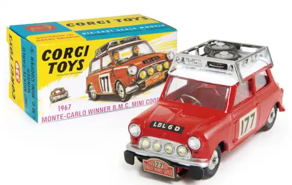 With the successful launch of the Corgi Model Club, led by the replication of the No 474 Wall’s Ice Cream Van, hot on its heels is the reissue of No 339 BMC Mini Cooper ‘S’ 1967 Monte Carlo Rally winner. Free gifts have also been confirmed for subscribers to this marvellous new series – an authentic 40-page reproduction of the 1966 Corgi Toys catalogue, a metal certificate tin and a set of 5 garage attendant figures, perfectly scaled for display with the models released. The first seven releases in the series are now confirmed (in this order) as: