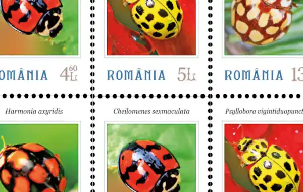 Romfilatelia has released a special stamp set on the theme of ladybirds, of which there are over 6,000 species worldwide, approximately 100 of those can be found in Romania itself.