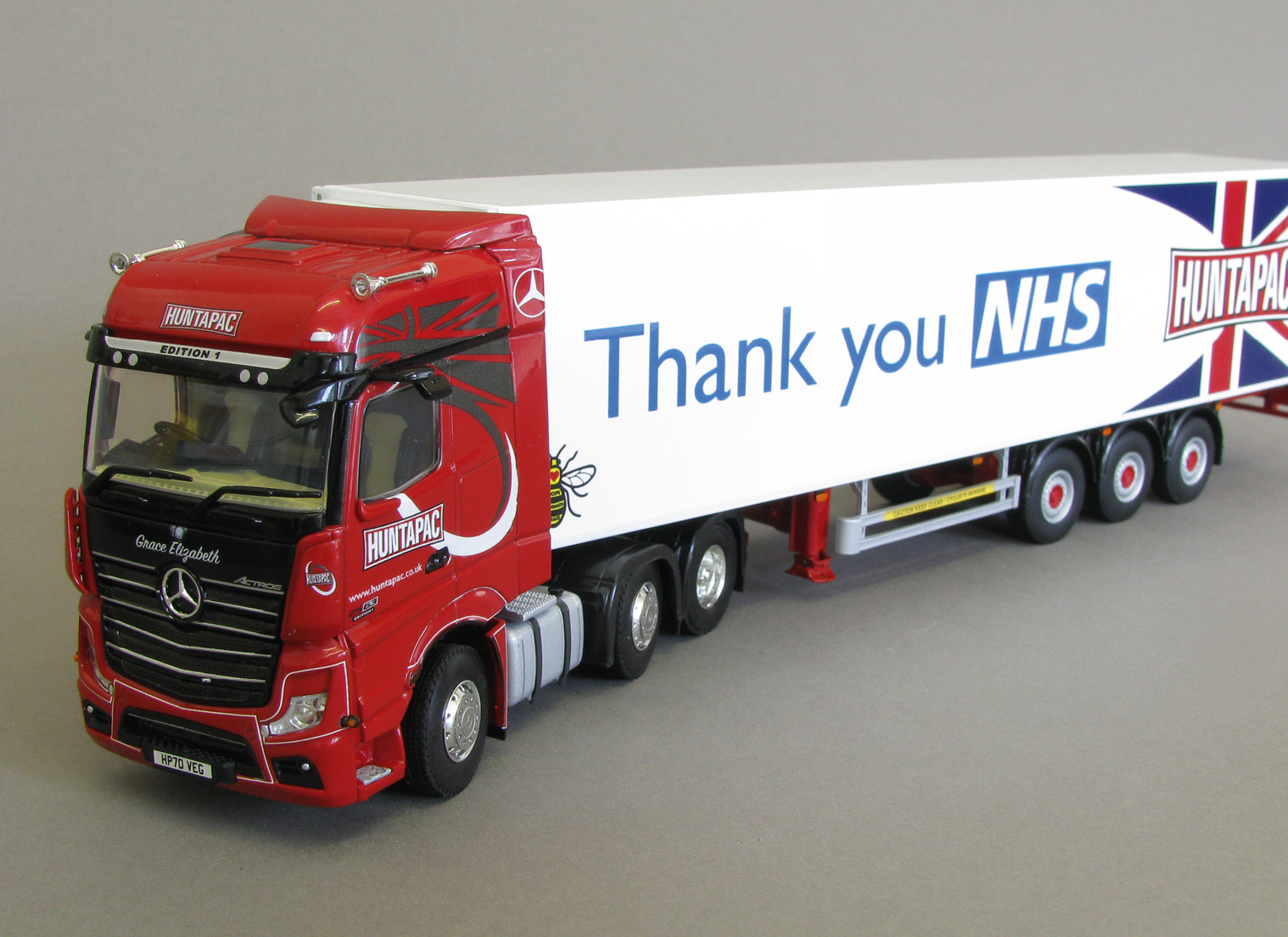 Huntapac’s Mercedes Actros Bigspace MP5 (6x2), with 3-axle, refrigerated trailer, features the company’s regular livery, but the trailer also carries a simple, but heartfelt “Thank You” message to the NHS. In dedicating the trailer livery to the NHS, Huntapac put out a statement saying: “To all of the NHS and front line healthcare workers, we at Huntapac say thank you. We are so proud of the work you are selflessly doing each and every day putting your own lives at risk, so that each and every one of us has access to lifesaving care when we need it. Thank you for taking care of us, our friends, our family and our work colleagues. Your continued display of bravery throughout this crisis is what makes Britain Great. Thank you!”