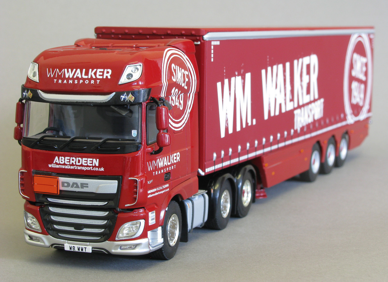 The William Walker Transport DAF XF 530 Super Space MY2017 (6x2) tractor unit comes with a 3-axle, skirted, curtain trailer. Founded in 1949, William Walker Transport is one of the oldest established transport companies in Aberdeen and has its origins in the logging industry. The Company actually ceased its operations in the logging industry quite some years ago and made the strategic decision to refocus on general haulage - primarily serving the seafreight, container and airfreight sectors, as well as supporting Aberdeen’s oil and gas industries. The truck and trailer livery was recently revamped and modernised. The new image is simple, clean and reminiscent in style to an iconic logistics brand and serves nicely as something of a hallmark to the change in ownership.The model is available from Search Impex, priced at £155 each (including UK delivery & VAT).