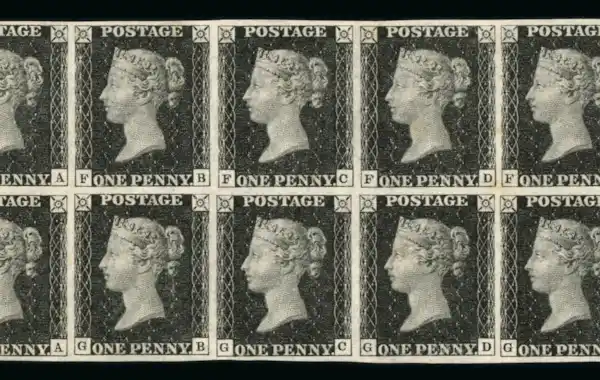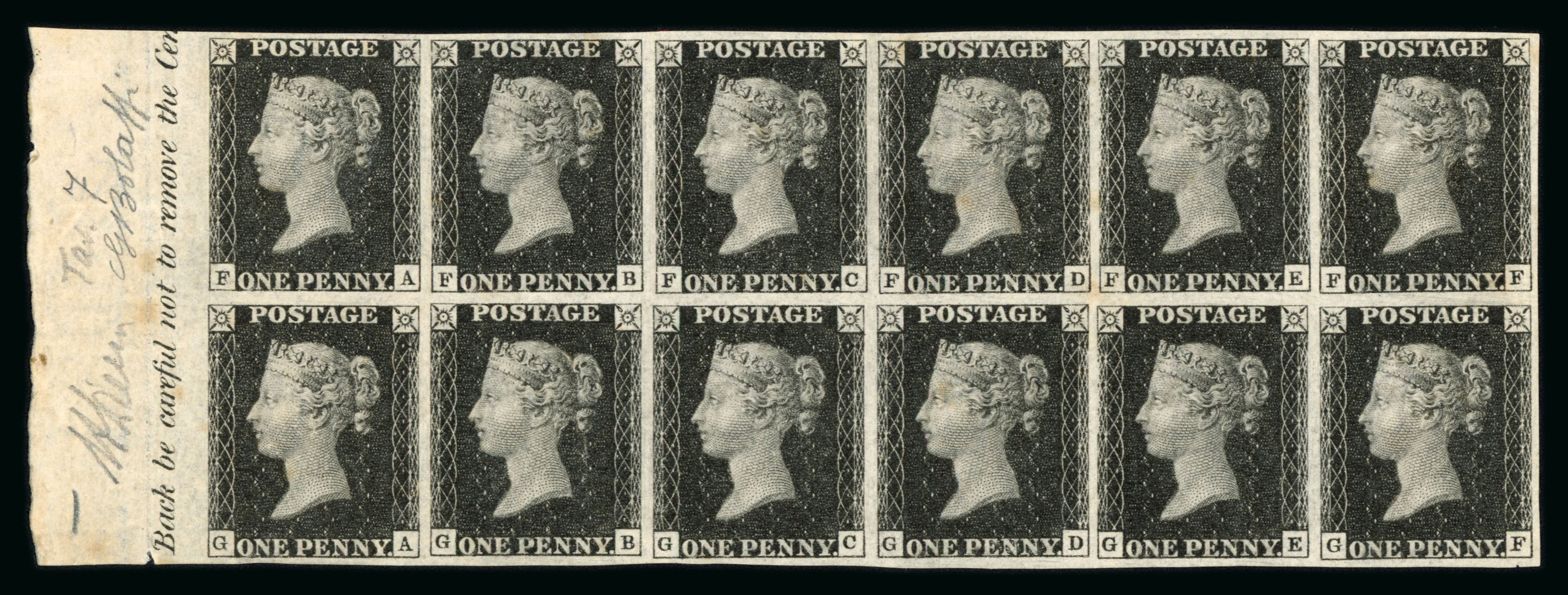 Above: A mint horizontal block of 12 1840 1d black on experimental thin paper is expected to sell for £200,000-£300,000