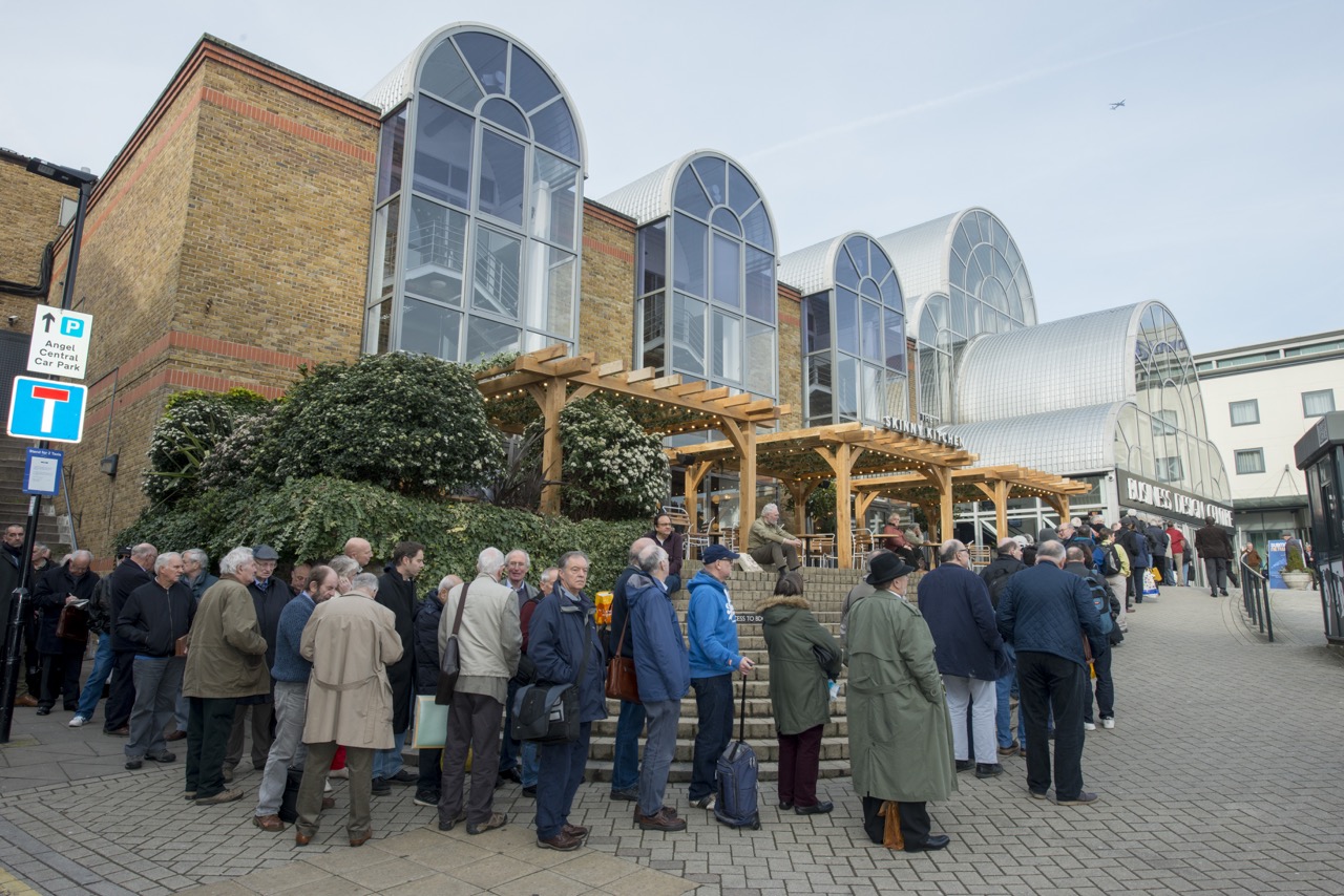 Above: The queue to get into Stampex in 2019, this year, visitors will be free to walk into the show with no ticket
