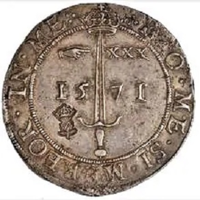 James VI (James I of England) issued a particular favourite of mine, in the Ryal, also known as a sword dollar for obvious reasons, it was a 30-shilling coin when issued but some examples bear the thistle countermark indicating the coin was revalued to 34 shillings 9 pence in 1578.