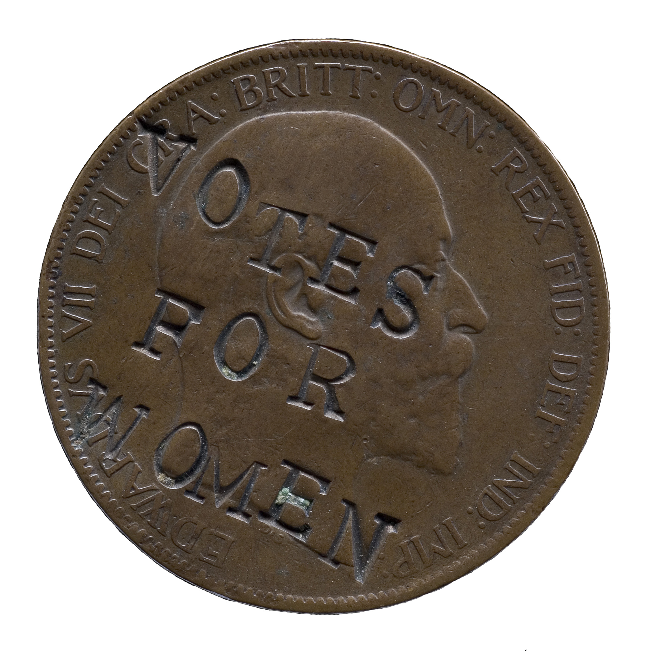 The deliberate targeting of the king, as constitutional monarch and head of the Church of England, could be likened to iconoclasm, a direct assault on the male authority figures that were perceived to be upholding the laws of the country. As Neil MacGregor wrote in A History of the World in 100 objects, ‘this coin stands for all those who fought for the right to vote’.