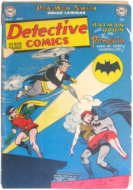 Batman and Robin were soon starring in not only Detective and Batman comic books but World's Finest, and Batman, minus Robin, was seen in All Star Comics as an honorary member of the Justice Society of America from issue number seven until the magazine folded with issue number 57 in 1951.