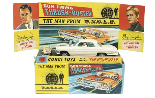 So where do we start? The Corgi Man from U.N.C.L.E. Thrushbuster Oldsmobile isn’t a rare sight on the swapmeet circuit, and this dark metallic blue model, with the oft-missing Waverly ring, is a good addition to any collection. But did you know there was a white version, too? This was made for the US market, so isn’t often sighted over here. Quite why Corgi decided to paint it white is beyond me: it does nothing for the car at all. How rare is it? Well, I have to admit that I’ve never seen one in 25 years of perusing stalls – yet they are around. It’s not scarce across the Pond but you’ll pay handsomely to acquire one – maybe up to four times the price of the blue version.