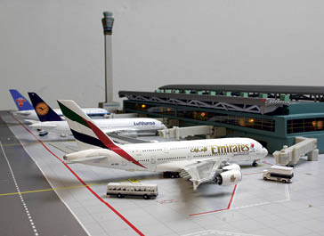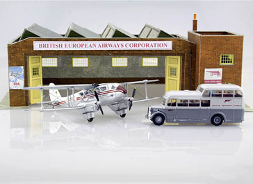 Aviation, both vintage and modern, offers so many opportunities at several scales too. Again, thanks to railway accessories, there are many, many years of releases that can be brought into play for our needs. N gauge at 1/148 scale is close enough for the huge range of 1/144 diecast available, OO gauge at 1/76 is close enough for 1/72 and O gauge at 1/43 is pretty good for the larger 1/48 offerings such as Corgi’s World War One releases and Hobby Master’s larger aircraft. More recent smaller models at 1/200 and 1/400 scales are well served by a great range of airport accessories, including terminals, vehicles, runways and aprons by Gemini Jets. Illustrated here are a 1/400 scale Gemini Jets airport terminal set with a trio of suitable scale Airbus A380s and vehicle accessory set, and a 1/76 scale Superquick office and hangar adapted, with custom BEA graphics, from one of the kits featured in Diecast Collector recently as a reader offer suits both the Oxford Diecast 1/72 scale BEA Dragon Rapide and the 1/76 scale Commer Commando BEA crew bus, also by Oxford. My favourite though is the Corgi Metcalfe 1/144 scale hangar that will feature later in the series.