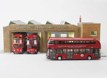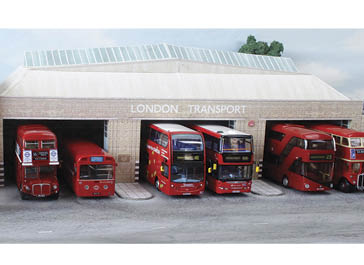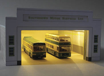 At 34 inches wide in 1/76 scale, Kingsway’s mighty reproduction of the Southdown Portsmouth Hillsea depot requires a big shelf but when it’s finished will make a great display for the various EFE, Pocketbond Classix, Corgi and Oxford Diecast models shown here. I’ve chosen to light the interior of the Hayling depot, using a ready-made battery-powered LED set up from Captain Jacks Models, but these can be easily made yourself if you have a little electrical know how and access to a suitable component store such as Maplin Electronics. I’m intending to modify more of my buildings this way in the future as it turns a display into a real talking point. I’m also working on a design to modify that big Sun Star Routemaster to have interior lighting and working headlights and tail lights – but that will be a whole different article!