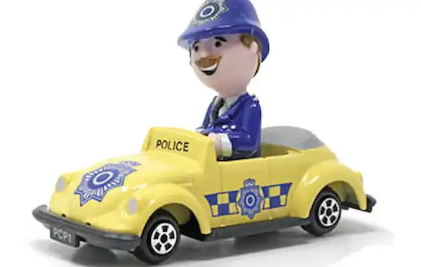 A diecast toy car based on P.C. Pinkerton was produced by Ertl in 1990. This may seem an odd combination, given that Ertl was an American company best known for model tractors. However, in the 1980s Ertl had a great deal of success with toys based on British TV franchises aimed at pre-schoolers, such as Thomas the Tank Engine and Postman Pat. Given that P.C. Pinkerton was a less famous property, Ertl didn’t invest a lot of money in tooling. It used an existing casting, a Volkswagen Beetle convertible that originated in the 'Smurfs' range from 1982. After that, the little Beetle was re-used quite frequently in Ertl character toy ranges, and was also driven by Noddy, Tweety Pie, Garfield and Dennis the Menace. All used the same casting, but with a different, oversized character figure in the driving seat. P.C. Bob appears to be the final issue of the VW, and was the only one of the Ertl cartoon ranges to consist of a single model.