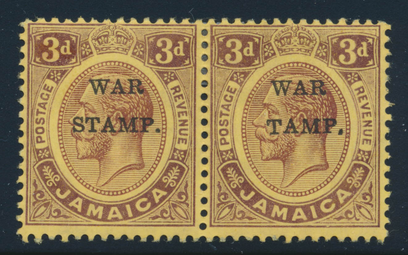 Continuing our box ticking exercise, here’s a wartime example, this time from Jamaica, touching on the King’s reign during the world to end all wars… which sadly didn’t end all wars but did leave we collectors with countless varieties. We’re also ticking the ‘error’ box here as the ‘WAR STAMP’ overprint on the second of our pair is missing the ‘S’. This example fetched a more affordable £157 in a Great Britain and British Commonwealth sale by Sparks Auctions of Ottawa.