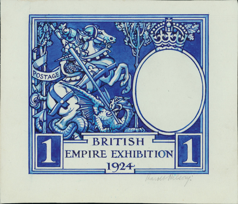 Aside from examples in the archives, museums and certain private collections, auction lots like this provide we collectors with the chance to see beautifully produced artwork that would otherwise be forgotten forever. Here we're treated to the hand-painted sketch of George and the Dragon by illustrator Harold Nelson, which was intended for the 1d value of the stamps marking 1924's British Empire Exhibition at Wembley. Remarkably it was rejected, and Nelson would have to wait five years for the design to be resurrected for the 1929 Postal Union Conference stamp.