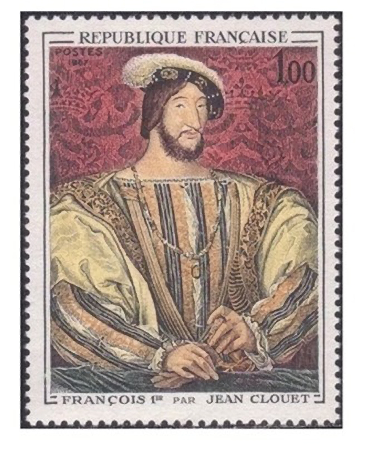 In a final parallel, both men died in the same year, 1547. Despite his pointless and unsuccessful dispute with Charles V, François is still celebrated in France. At his peak, he embodied much of the best in that nation: intelligence, love of culture, a general joie de vivre. This handsome stamp, issued in 1967 featuring a portrait by court painter Jean Clouet, suits him.