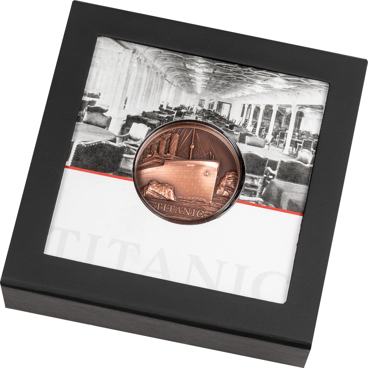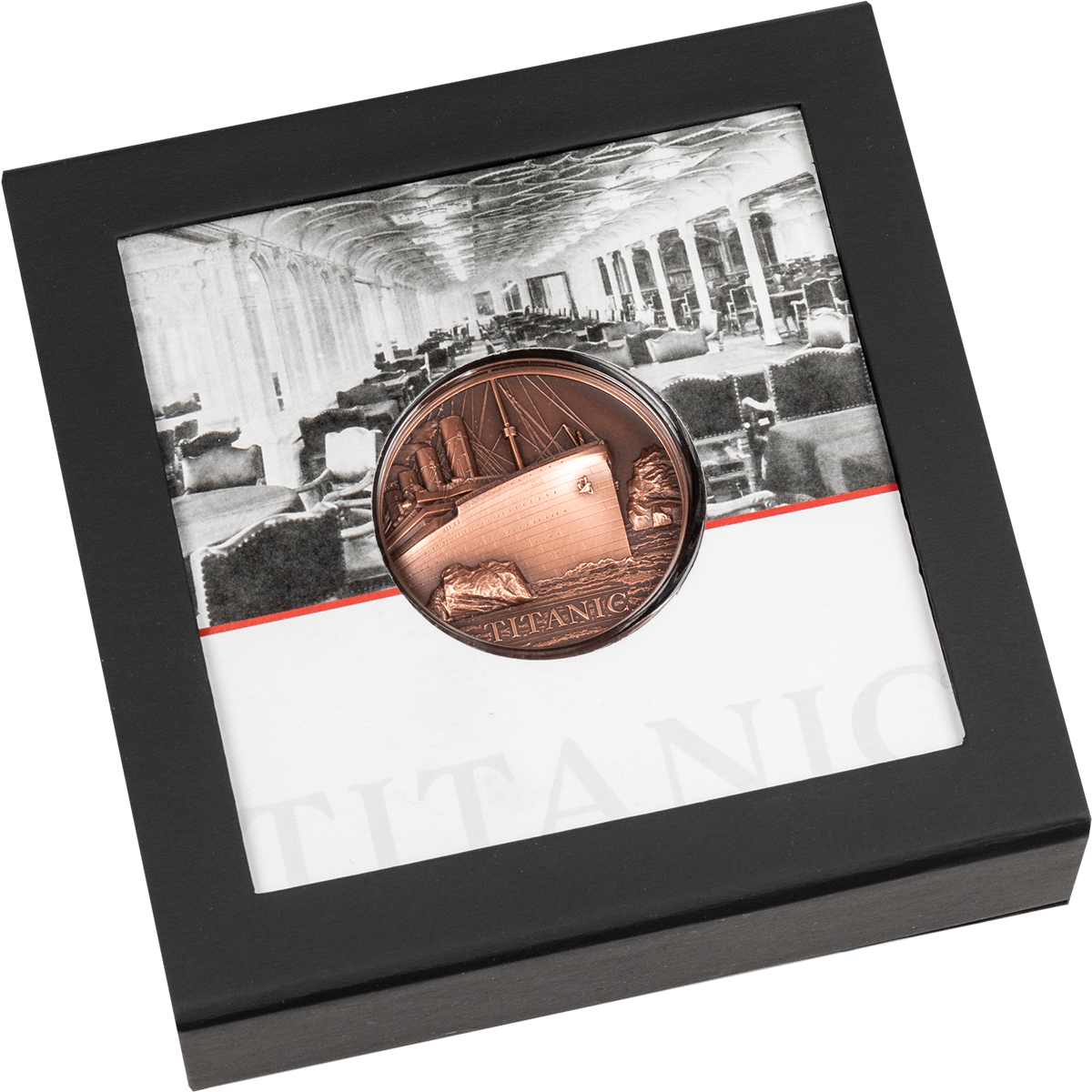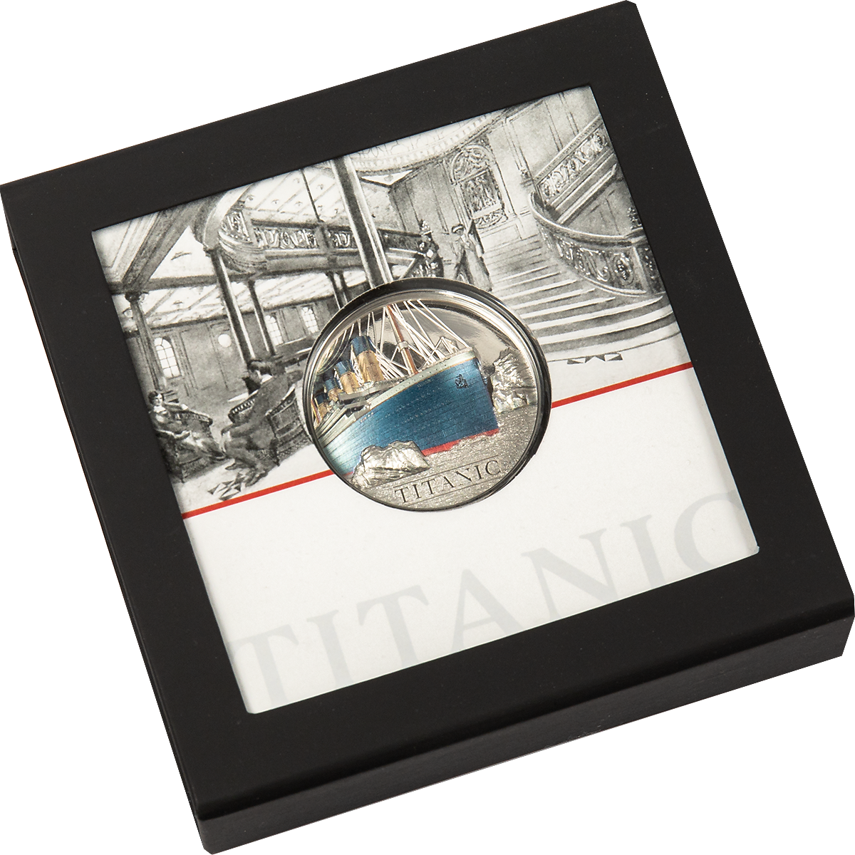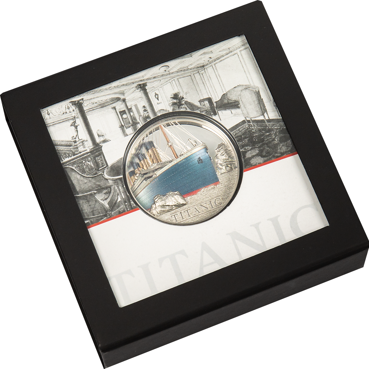 If you want to own a piece of the Titanic yourself, you may do so by purchasing one of the two silver coins or the one-oz gold coin, which feature an inlay of original coal within the elevation of the ship, placed at the exact spot where the coal was stored in the Titanic.