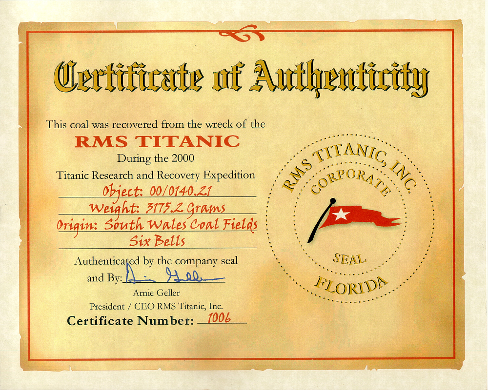 Just a handful of artefacts from the Titanic have made it back to the water surface as the ship lies at a depth of 3800 m (12470 ft.) at the bottom of the sea. One of them is an authentic coal lump which was recovered back in 2000.