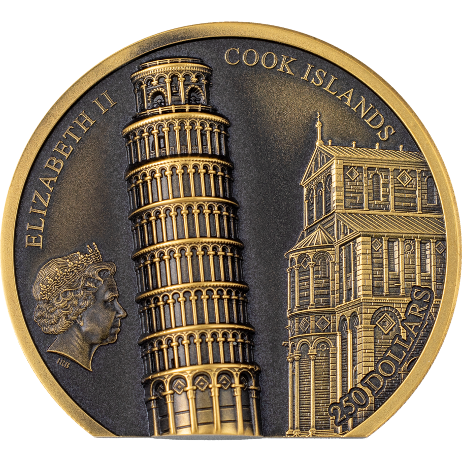 The Leaning Tower of Pisa, one if the world's most recognisable buildings, is celebrated in this lavish gold coin, which has a face value of $250.