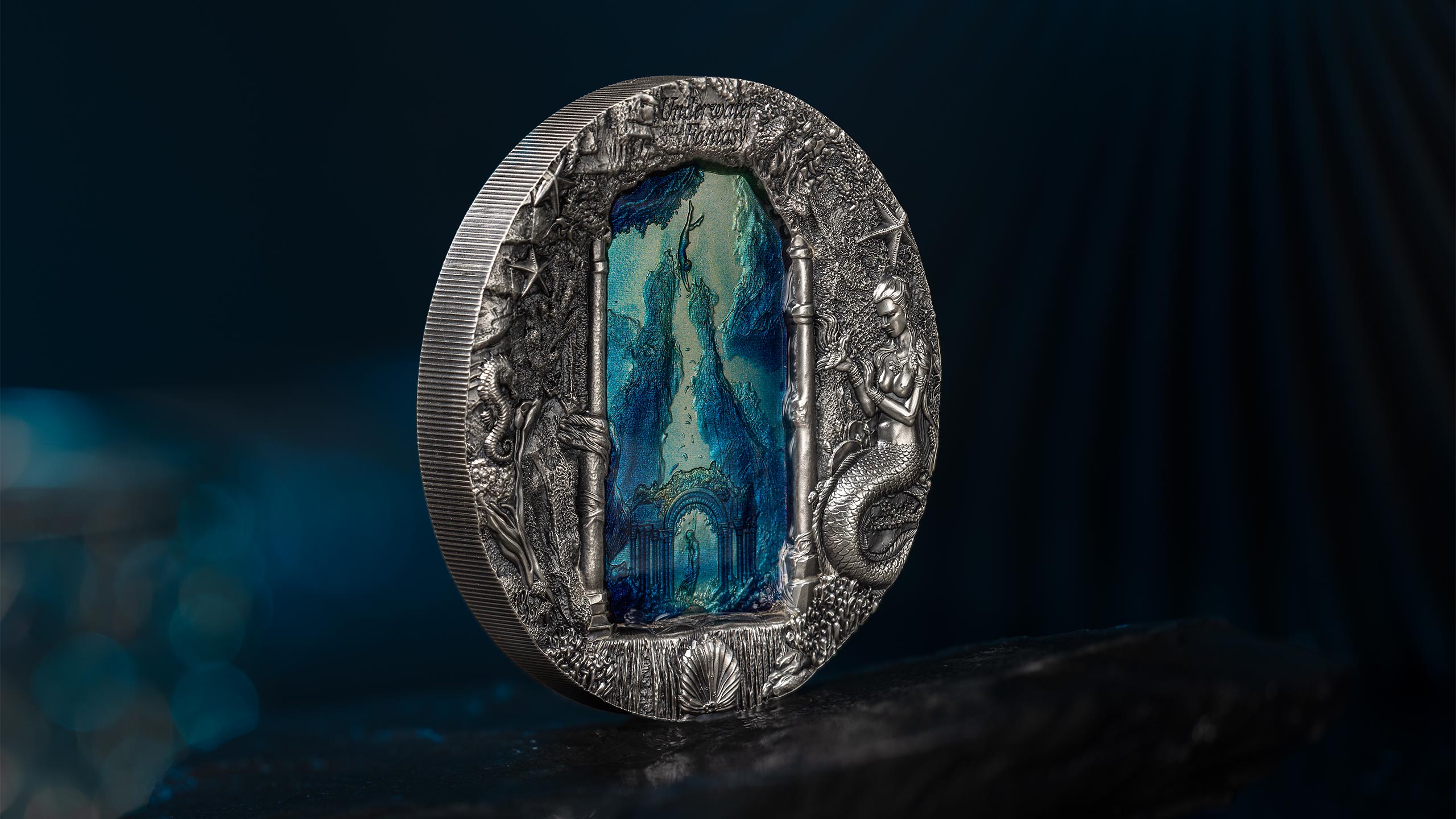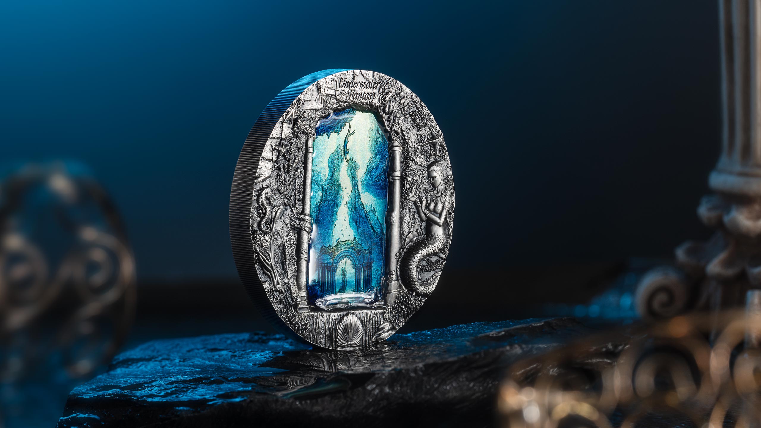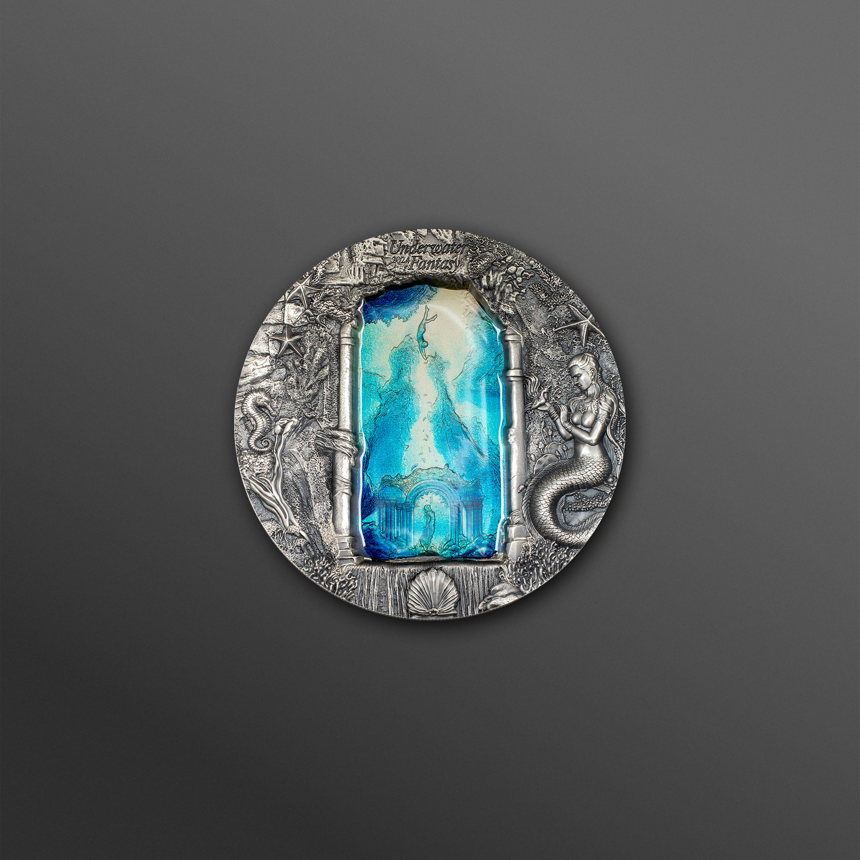The Underwater Fantasy coin features a remarkable relief design and unqiue embossing, creating a striking image of life under the waves.