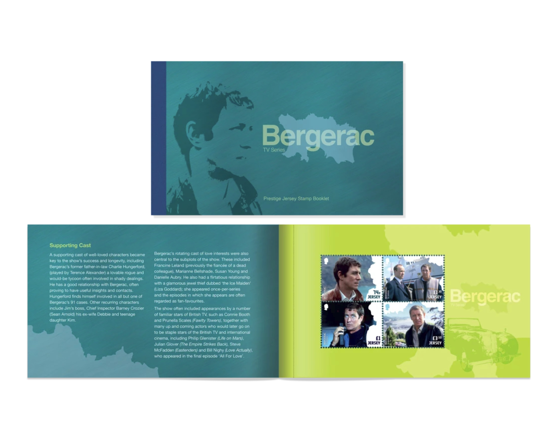The Bergerac stamps are also available as part of a Stamps Prestige Booklet incorporating two sets of stamps and additional information about the series.