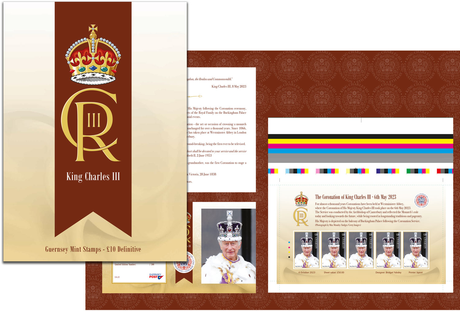The new King Charles III £10 Definitive stamp shows His Majesty King Charles III on his coronation day. Collectors can purchase a single £10 definitive stamp from Guernsey Stamps for its face value, £10. Other items available as part of this issue include a first day cover, presentation pack and a limited number of sheets including 5 definitive stamps.