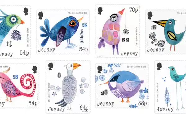 During the Covid-19 lockdown of 2020, we all found different ways of coping, be it baking, gardening, writing or creating. Jersey's 'Flockdown' stamps celebrate the incredible artwork of a local who decided to paint a picture of a colourful bird every day.