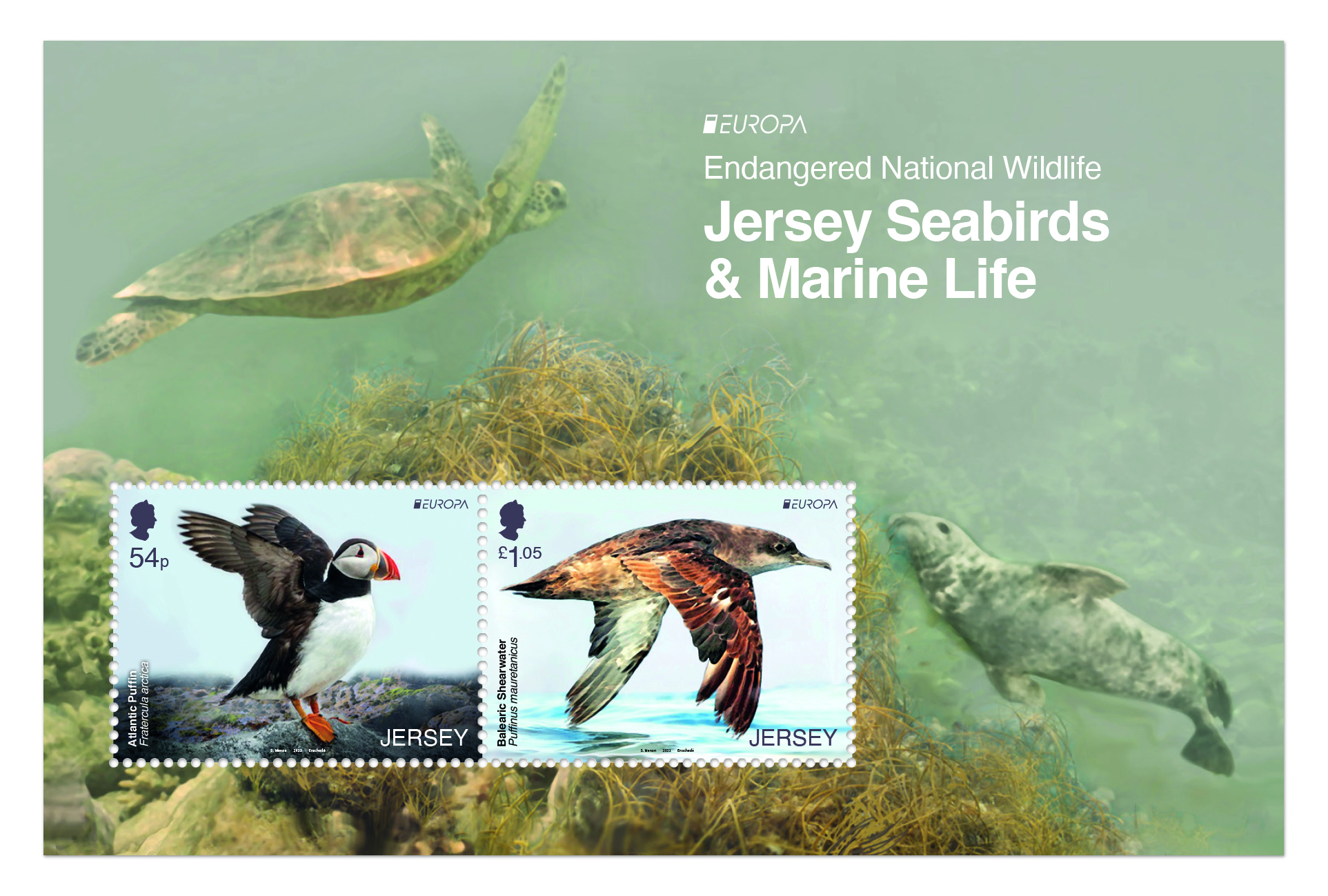 Jersey seabirds and marine life are the subject of a set of six stamps and a souvenir coin. The stamps are part of the 2021 Europa stamp issue, Endangered National Wildlife and have been illustrated by national science illustrator Sara Menon, with two stamps in the set featuring the Europa logo.