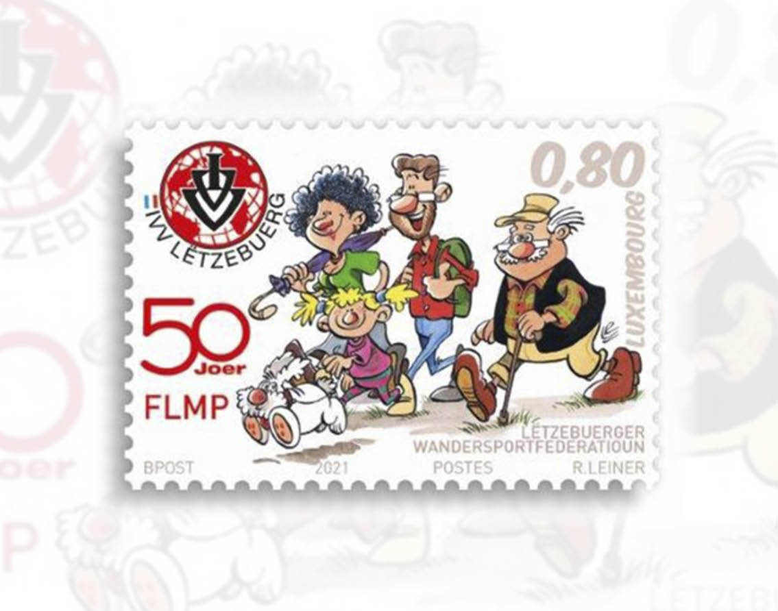 The Fédération Luxembourgeoise de Marche Populaire organises walks across the country each weekend, and a family of walkers can be seen on the new stamp from Post Luxembourg.