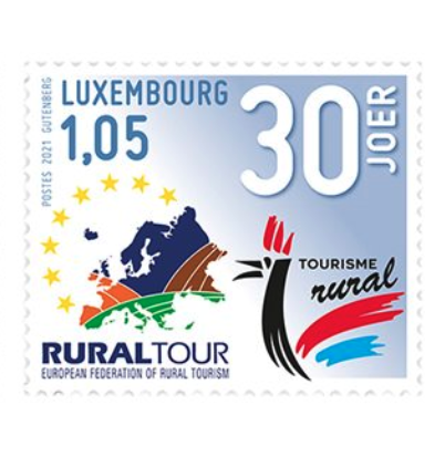 The other motive pays tribute to the efforts of the APTR (Association Luxembourgeoise pour la Promotion du Tourisme Rural), which has continued to expand its range of services for 30 years and was able to host in 2021 the general assembly of the European association, which celebrated its 30th anniversary.